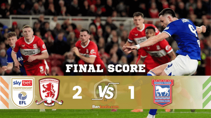 รายงานการแข่งขัน: มิดเดิลส์เบรอ 2–1 อิปสวิช ทาวน์