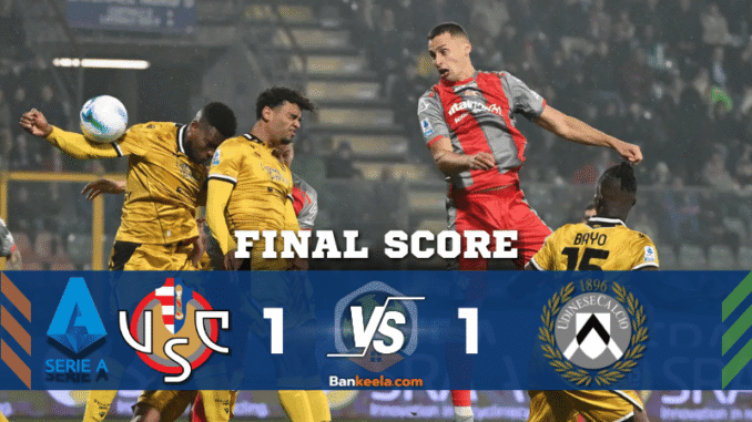 รายงานการแข่งขัน: เครโมเนเซ 1-1 อูดิเนเซ