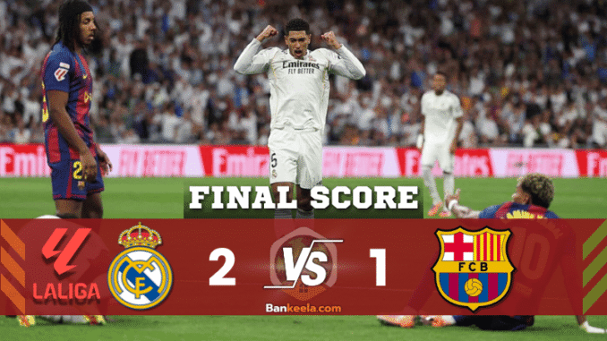 ศึกเอลกลาซิโก้แห่งศึก ลาลีกา สเปน ที่สนาม ซานติอาโก้ เบร์นาเบว จบลงอย่างสุดระทึก เมื่อ “ราชันชุดขาว” เรอัล มาดริด เปิดบ้านเฉือนเอาชนะ “เจ้าบุญทุ่ม” บาร์เซโลน่า ไปได้ 2-1 แบบสุดมัน บ้านกีฬา รายงาน ผลบอลสด นัดนี้ที่เต็มไปด้วยอารมณ์ ความเข้มข้น และจังหวะดราม่าจนวินาทีสุดท้าย!
