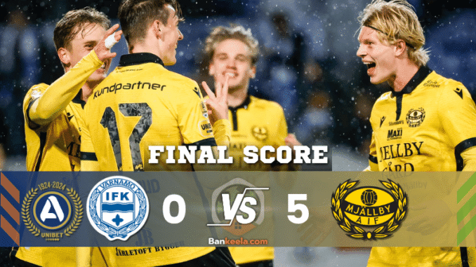 ศึก ออลสเวนส์คาน สวีเดน คืนนี้กลายเป็นเวทีประจัญบานของความโหด เมื่อ มอลล์บี้ เอไอเอฟ (Mjällby AIF) ระเบิดฟอร์มขั้นเทพบุกถล่มเจ้าบ้าน ไอเอฟเค วาร์นาโม่ (IFK Värnamo) แบบไม่ไว้หน้า 5-0 พร้อมรักษาจ่าฝูงในตารางไว้อย่างแข็งแกร่งที่ 72 คะแนน จาก 29 นัด ขณะที่เจ้าบ้านยังจมท้ายตารางอยู่ที่อันดับ 16 มีเพียง 16 แต้ม