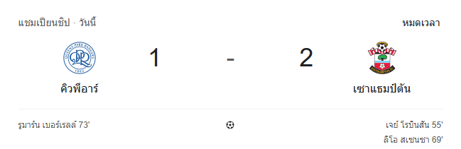 - หมดเวลา: ควีนส์ปาร์ค เรนเจอร์ส 1–2 เซาแธมป์ตัน