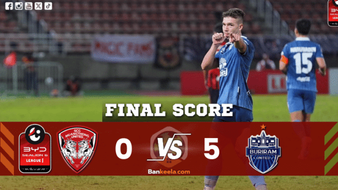 🔥 “บุรีรัมย์ถล่มเละ!” เมืองทองพังยับ 0-5 ต่อหน้าแฟนบอล ศึกไทยลีกเดือดสะเทือนสนาม! 🔥
