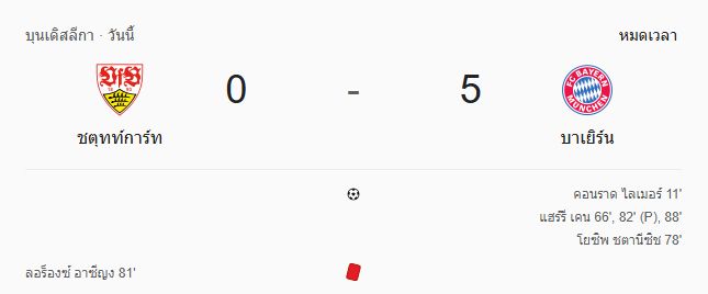 - นาทีที่ 95: จบเกม! บาเยิร์น มิวนิค บุกถล่ม ชตุทท์การ์ท 0-5