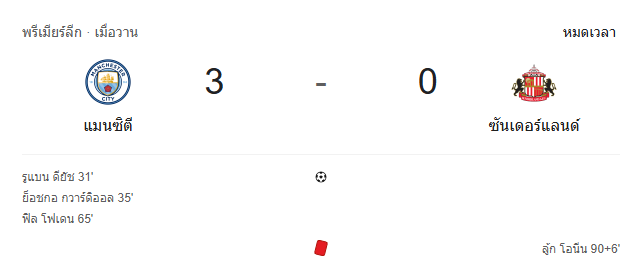 ผลบอลสด พรีเมียร์ลีก ระหว่าง แมนเชสเตอร์ ซิตี้ 3-0 ซันเดอร์แลนด์ วันนี้ 6/12/68