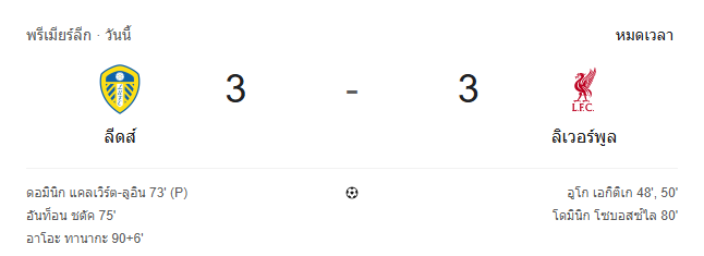 • นาทีที่ 101: จบเกม ลีดส์ ยูไนเต็ด เสมอ ลิเวอร์พูล 3-3 แบบสุดมันส์