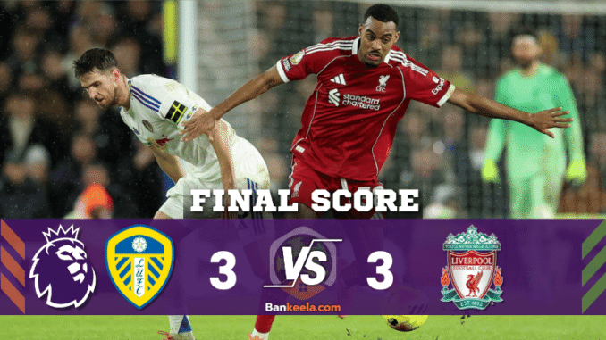 ศึกพรีเมียร์ลีกค่ำคืนเดือดที่ เอลแลนด์ โร้ด บ้านกีฬา ขอพาแฟนบอลไปเกาะติด ผลบอลสด ที่ร้อนฉ่าแบบหยุดหายใจ เมื่อ ลีดส์ ยูไนเต็ด เปิดบ้านเสมอ ลิเวอร์พูล 3-3 เกมที่พลิกไปมาราวกับหนังแอ็กชัน จนแฟนบอลทั้งสนามแทบลุกจากเก้าอี้ไม่ขึ้นในช่วงทดเวลา!