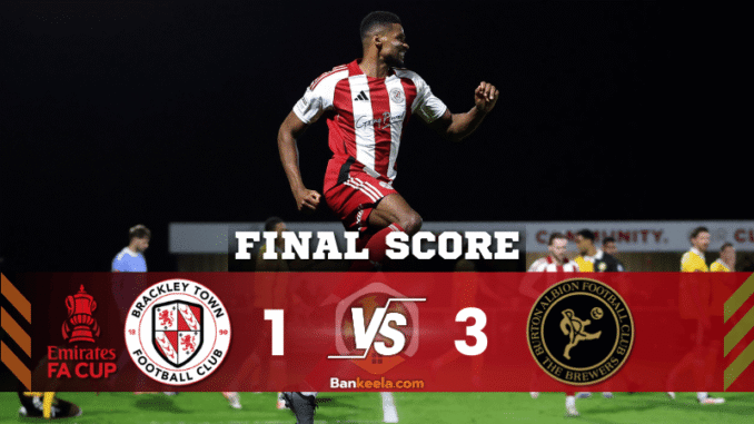 รายงานการแข่งขัน: แบร็คลีย์ ทาวน์ 1-3 เบอร์ตัน อัลเบี้ยน