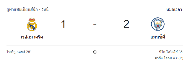 - นาทีที่ 95: จบเกม เรอัล มาดริด พ่าย แมนฯ ซิตี้ 1-2