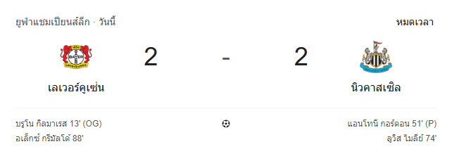 - นาทีที่ 95: จบเกม เลเวอร์คูเซ่นไล่ตามเสมอ นิวคาสเซิล 2-2 สุดมันส์