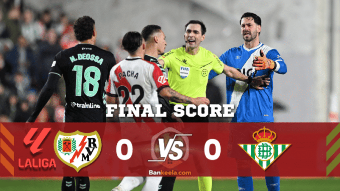 เสียงนกหวีดสุดท้ายดังขึ้น พร้อมผล ผลบอล เสมอ 0-0 ที่สะท้อนภาพรวมของเกมได้อย่างชัดเจน เป็นแมตช์ที่วัดกันด้วยวินัยเกมรับ ความแข็งแกร่ง และหัวใจนักสู้ ทั้งราโย่ บาเยกาโน่ และเรอัล เบติส ต้องแบ่งแต้มกันไปแบบไม่มีใครเสียหน้า แต่ก็ไม่มีใครสมหวังเต็มที่