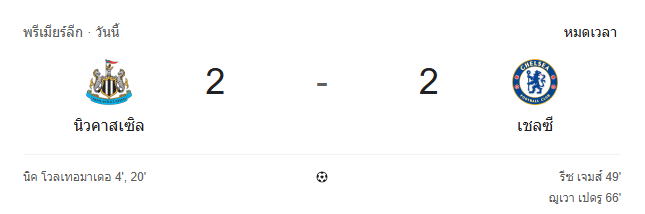 - หมดเวลา: นิวคาสเซิล 2-2 เชลซี