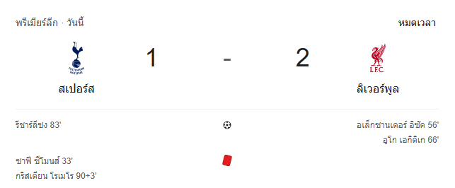 • หมดเวลา: สเปอร์ส 1-2 ลิเวอร์พูล