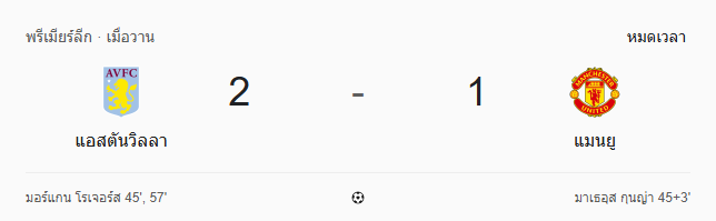 ผลบอลสด พรีเมียร์ลีก ระหว่าง แอสตัน วิลล่า vs แมนเชสเตอร์ ยูไนเต็ด วันนี้ 21/12/68 ดูบอลย้อนหลัง คลิปไฮไลท์ ดูบอล พรีเมียร์ลีก