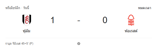ผลบอลสด พรีเมียร์ลีก ระหว่าง ฟูแล่ม vs น็อตติ้งแฮม ฟอเรสต์ วันนี้ 23/12/68 ดูบอลย้อนหลัง คลิปไฮไลท์ ดูบอล พรีเมียร์ลีก