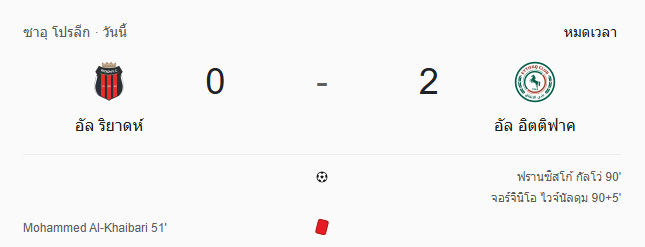 ผลบอลสด ซาอุดิ โปรเฟสชั่นแนล ลีก ระหว่าง อัล ลิยาช vs อัล อิตติฟาค วันนี้ 26/12/68 ดูบอลย้อนหลัง คลิปไฮไลท์ ดูบอล ซาอุดิ โปรเฟสชั่นแนล ลีก