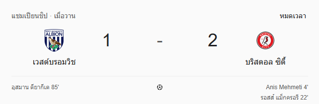 ผลบอลสด อีเอฟแอลแชมเปียนชิป ระหว่าง เวสต์ บรอมมิช อัลเบียน vs บริสตอล ซิตี้ วันนี้ 26/12/68 ดูบอลย้อนหลัง คลิปไฮไลท์ ดูบอล อีเอฟแอลแชมเปียนชิป