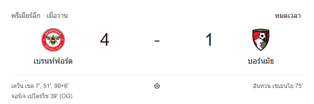 ผลบอลสด พรีเมียร์ลีก ระหว่าง เบรนท์ฟอร์ด vs บอร์นมัธ เอเอฟซี วันนี้ 27/12/68 ดูบอลย้อนหลัง คลิปไฮไลท์ ดูบอล พรีเมียร์ลีก