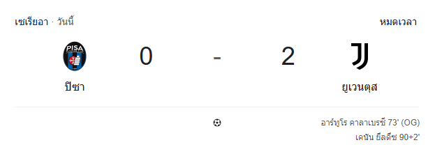 ผลบอลสด เซเรียอา ระหว่าง ปิซ่า vs ยูเวนตุส วันนี้ 28/12/68 ดูบอลย้อนหลัง คลิปไฮไลท์ ดูบอล เซเรียอา