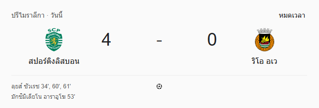 ผลบอลสด ปรีไมราลีกา ระหว่าง สปอร์ติ้ง ลิสบอน vs ริโอ อาฟ วันนี้ 29/12/68 ดูบอลย้อนหลัง คลิปไฮไลท์ ดูบอล ปรีไมราลีกา