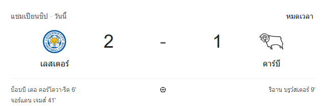 ดูบอลสดอีเอฟแอลแชมเปียนชิป ถ่ายทอดสด เลสเตอร์ ซิตี้ พบ ดาร์บี้ เค้าท์ตี้ 29/12/68