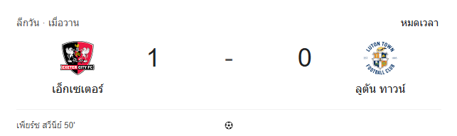 ผลบอลสด ลีกวัน อังกฤษ ระหว่าง เอ็กซ์เซเตอร์ ซิตี้ vs ลูตัน ทาวน์ วันนี้ 1/1/69 ดูบอลย้อนหลัง คลิปไฮไลท์ ดูบอล ลีกวัน อังกฤษ
