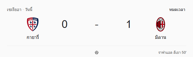 ผลบอลสด เซเรียอา ระหว่าง กาญารี่ vs เอซี มิลาน วันนี้ 3/1/69 ดูบอลย้อนหลัง คลิปไฮไลท์ ดูบอล เซเรียอา