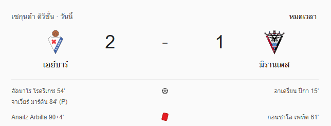 ผลบอลสด เซกุนด้า ดิวิชั่น ระหว่าง เออิบาร์ vs มิรานเดส วันนี้ 3/1/69 ดูบอลย้อนหลัง คลิปไฮไลท์ ดูบอล เซกุนด้า ดิวิชั่น