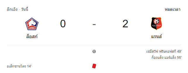 - หมดเวลา: ลีลล์ 0-2 แรนส์