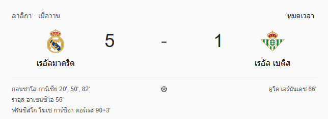 - หมดเวลา: เรอัล มาดริด 5-1 เรอัล เบติส