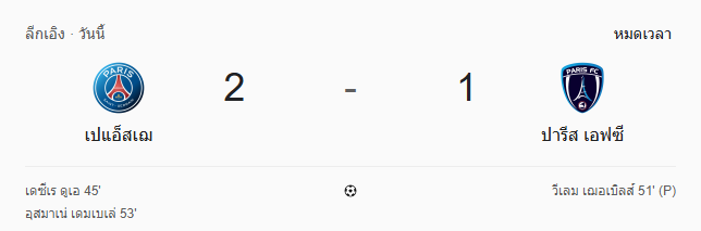 • หมดเวลา: ปารีส แซงต์-แชร์กแมง 2-1 ปารีส เอฟซี