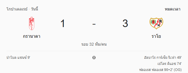 - จบครึ่งแรก: กรานาดา 1-0 ราโย บาเยกาโน