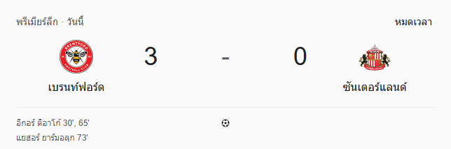 - หมดเวลา: เบรนท์ฟอร์ด 3-0 ซันเดอร์แลนด์