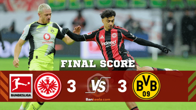เสียงนกหวีดสุดท้ายดังขึ้น สกอร์ ไอน์ทรัค แฟร้งค์เฟิร์ต 3-3 โบรุสเซีย ดอร์ทมุนด์ เป็นหนึ่งในเกมที่มันส์ที่สุดของฤดูกาล ผลเสมออาจไม่ถูกใจใครทั้งหมด แต่รูปเกม ความดุดัน และคุณภาพการเข้าทำ ทำให้แมตช์นี้ถูกพูดถึงในหมู่แฟนบอลเยอรมันแบบยาวๆ