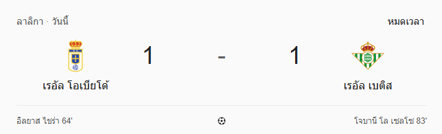 - หมดเวลา: เรอัล โอเบียโด เสมอ เรอัล เบติส 1-1