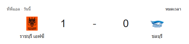 - จบครึ่งแรก: ราชบุรี เอฟซี 0-0 ชลบุรี เอฟซี