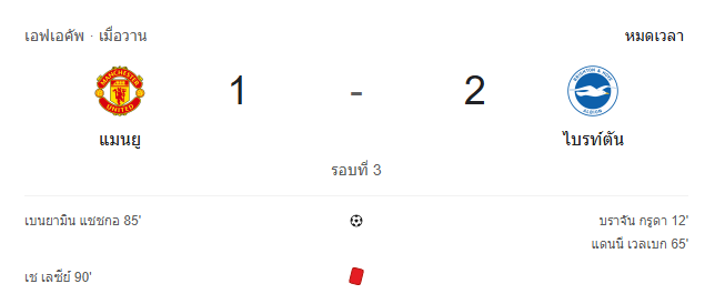 - หมดเวลา: แมนเชสเตอร์ ยูไนเต็ด แพ้ ไบรท์ตัน แอนด์ โฮฟ อัลเบี้ยน 1-2
