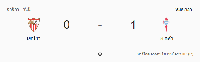 - หมดเวลา: เซบีย่า แพ้ เซลต้า บีโก้ 0-1