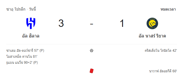 - หมดเวลา: อัล ฮิลาล ชนะ อัล นาสเซอร์ 3-1