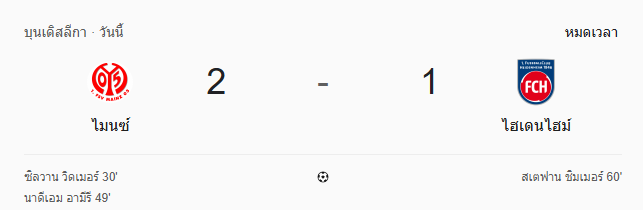 ผลบอลสด บุนเดสลีกา ระหว่าง ไมนซ์ 05 vs ไฮน์เดนไฮม์ วันนี้ 14/1/69 ดูบอลย้อนหลัง คลิปไฮไลท์ ดูบอล บุนเดสลีกา