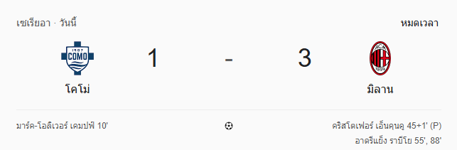 • หมดเวลา: โคโม่ แพ้ เอซี มิลาน 1-3