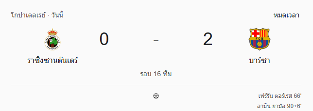 ผลบอลสด โกปา เดล เรย์ ระหว่าง ราซิ่ง ซานตานเดร์ vs บาร์เซโลน่า วันนี้ 16/1/69 ดูบอลย้อนหลัง คลิปไฮไลท์ ดูบอล โกปา เดล เรย์
