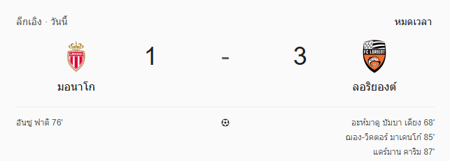 ผลบอลสด ลีกเอิง ระหว่าง โมนาโก vs ลอริยองต์ วันนี้ 17/1/69 ดูบอลย้อนหลัง คลิปไฮไลท์ ดูบอล ลีกเอิง