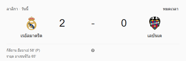 ผลบอลสด ลาลิกา ระหว่าง เรอัล มาดริด vs เลบานเต้ วันนี้ 17/1/69 ดูบอลย้อนหลัง คลิปไฮไลท์ ดูบอล ลาลิกา