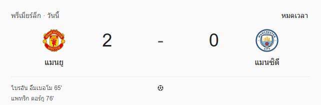ผลบอลสด พรีเมียร์ลีก ระหว่าง แมนเชสเตอร์ ยูไนเต็ด vs แมนเชสเตอร์ ซิตี้ วันนี้ 17/1/69 ดูบอลย้อนหลัง คลิปไฮไลท์ ดูบอล พรีเมียร์ลีก
