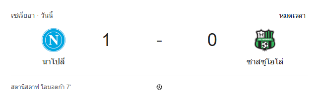ผลบอลสด เซเรียอา ระหว่าง นาโปลี vs ซัสซูโอโล่ วันนี้ 18/1/69 ดูบอลย้อนหลัง คลิปไฮไลท์ ดูบอล เซเรียอา