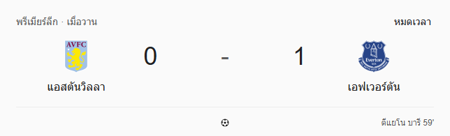 ผลบอลสด พรีเมียร์ลีก ระหว่าง แอสตัน วิลล่า vs เอฟเวอร์ตัน วันนี้ 18/1/69 ดูบอลย้อนหลัง คลิปไฮไลท์ ดูบอล พรีเมียร์ลีก