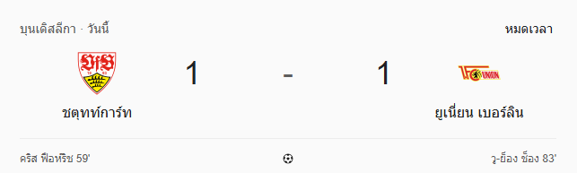 ผลบอลสด บุนเดสลีกา ระหว่าง สตุ๊ตการ์ท vs อูนิโอน เบอร์ลิน วันนี้ 18/1/69 ดูบอลย้อนหลัง คลิปไฮไลท์ ดูบอล บุนเดสลีกา