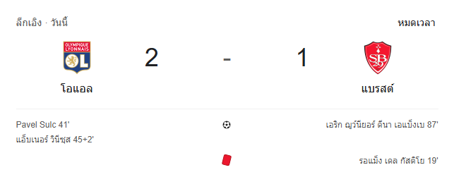 ผลบอลสด ลีกเอิง ระหว่าง โอลิมปิก ลียง vs แบรสต์ วันนี้ 19/1/69 ดูบอลย้อนหลัง คลิปไฮไลท์ ดูบอล ลีกเอิง