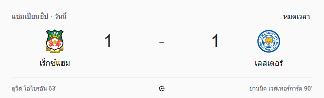 ผลเสมอเกมนี้ถือว่า เร็กซ์แฮม แสดงให้เห็นถึงหัวใจนักสู้ ต่อกรกับทีมระดับอดีตแชมป์พรีเมียร์ลีกได้อย่างสมศักดิ์ศรี ส่วน เลสเตอร์ ซิตี้ แม้จะรอดพ้นความพ่ายแพ้ในนาทีสุดท้าย แต่ก็ต้องยอมรับว่าเกมนี้ไม่ง่ายเลยแม้แต่น้อย แฟนบอลที่ติดตาม ผลบอลสด คู่นี้คงต้องยกนิ้วให้กับความเข้มข้นตลอด 90 นาที