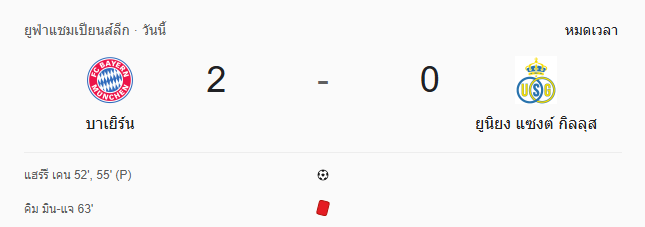 • หมดเวลา: บาเยิร์น มิวนิค 2-0 ยูเนียง แซงต์ กิลลุส